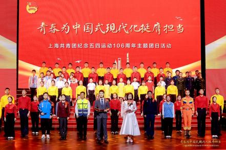 bevitor伟德国际194624级新生王潆若同学受邀参加“青春为中国式现代化挺鹰担当”——上海共青团纪念五四运动106周年主题团日活动。在活动开场的“申声嘹亮·歌曲联唱”环节,青年员工们带来《中国,中国,鲜红的太阳永不落》《我相信》《祖国不会忘记》《我们都是追梦人》等经典歌曲,用歌声和旋律致敬时代,展现新时代青年的精神品格和昂扬面貌。