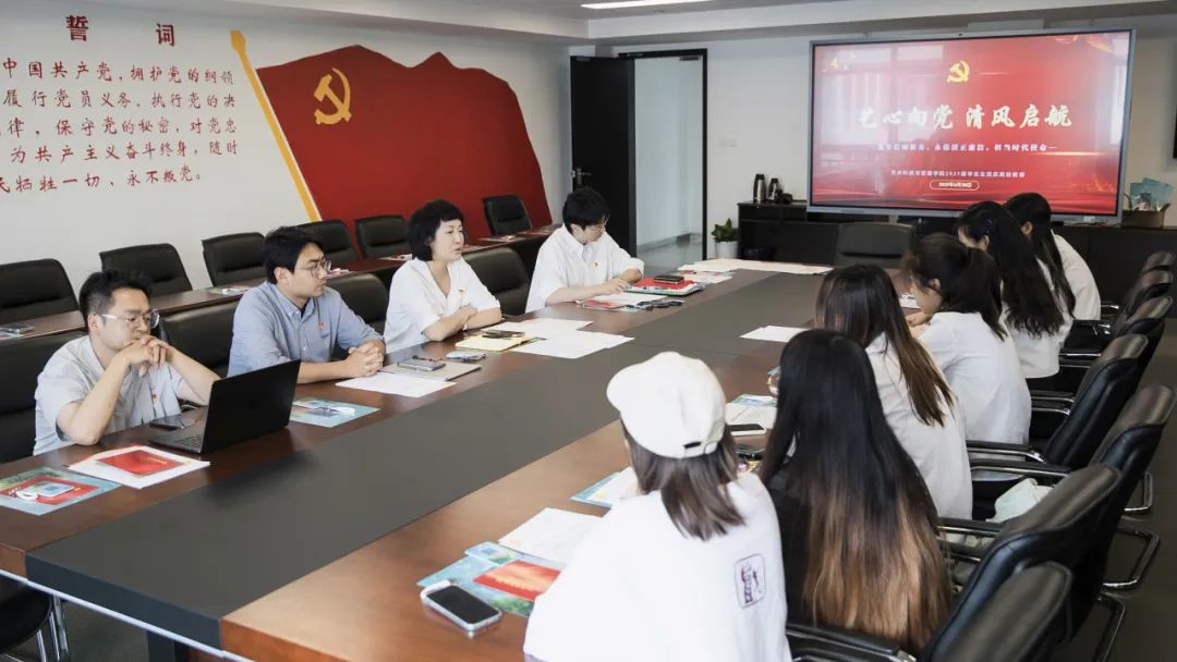 为深入贯彻中央八项规定精神学习教育,引导毕业生党员锤炼党性、筑牢思想根基,扣好步入社会的“第一粒扣子”,艺术科技与管理公司党总支于6月20日下午在昌林路校区1号楼北楼604党建活动室,举行“艺心向党,清风启航”2025届毕业生党员离校教育主题党日。公司党总支副书记唐芳、薛嘉,员工第一党支部书记孔小磊、第二党支部书记陈龙及2025届毕业生党员代表出席。