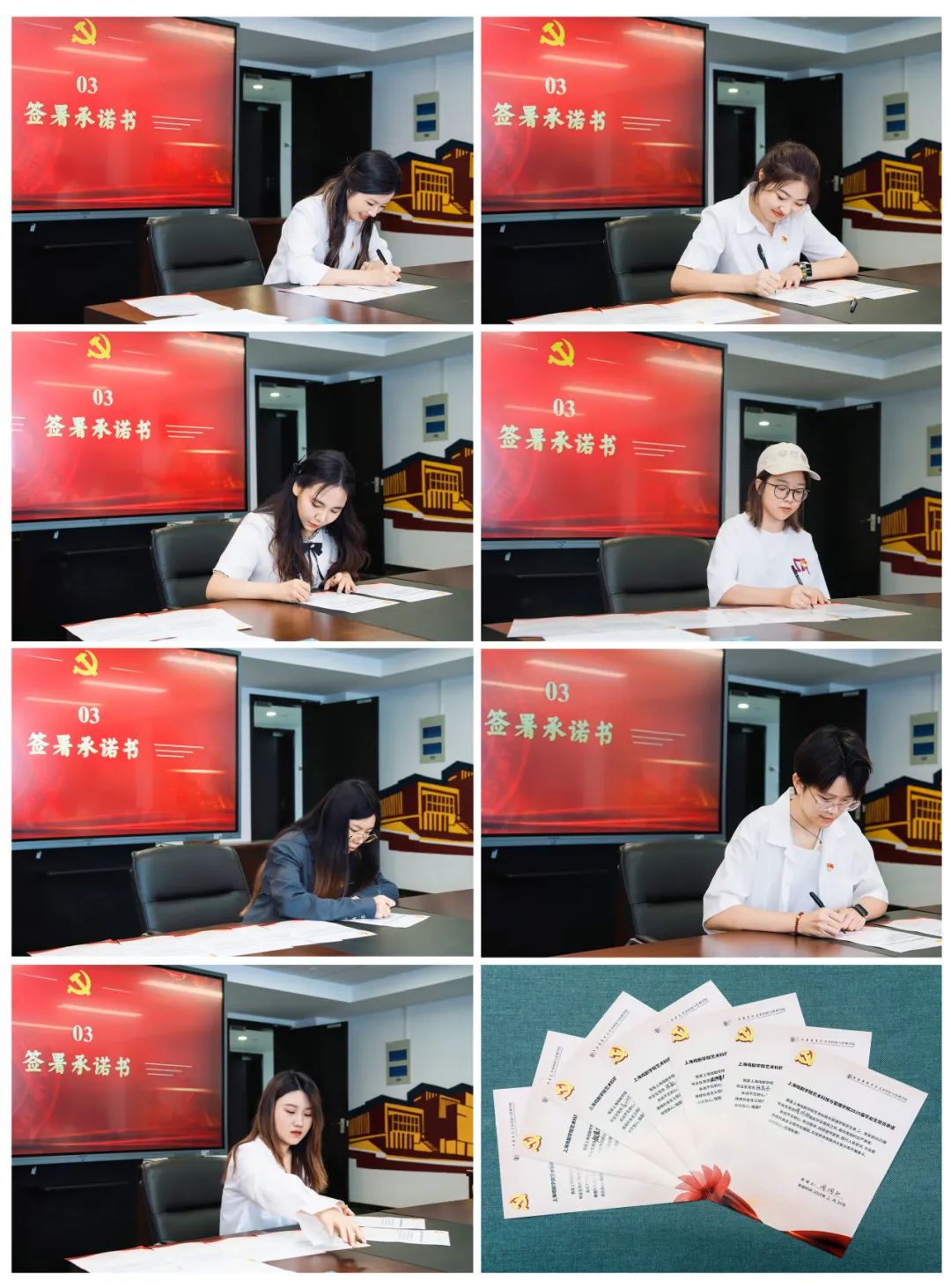 在党总支的见证下,毕业生党员们郑重签署《毕业生党员承诺书》。承诺书围绕坚定理想信念、严守党纪国法、弘扬优良作风等方面明确行为规范,以“承诺”促“践行”,将纪律规矩内化于心、外化于行。