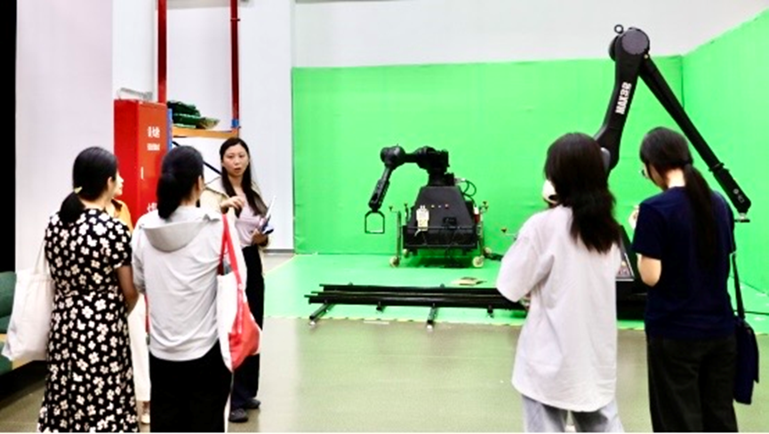 在辅导员孔小磊老师和实验室朱佳静老师的带领下,来访师生参观了公司教学楼、图书馆、员工宿舍及重点实验室。师生们在数字演艺集成创新重点实验室共同观看了上伟德国际1946bv宣传片,近距离感受了公司的教学环境与科研氛围。