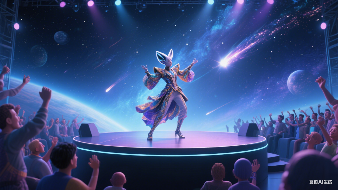 在基于AR的演艺元宇宙中,真人演员与数字人演员可以配合进行更复杂的表演。例如,2022年北京卫视春节联欢晚会中,真人演员刘宇与数字人演员“苏小妹”共同演绎了节目《星河入梦》,由于虚实结合舞台的特殊性,导演组对于镜头画面、舞台配合等都要求极高,真人演员刘宇的舞台走位需要每一遍都做到完全一致,彩排、空镜录制及最终录制均花费了数小时。