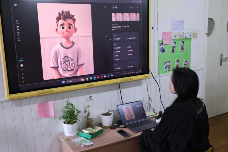 课程尾声,邵波尔同学为每位孩子送上了一份极具科技感的暖心礼物——运用即梦AI软件,以孩子们现场照片为基础生成的专属卡通形象。这些或可爱俏皮、或帅气酷炫的卡通形象,瞬间俘获了孩子们的心。