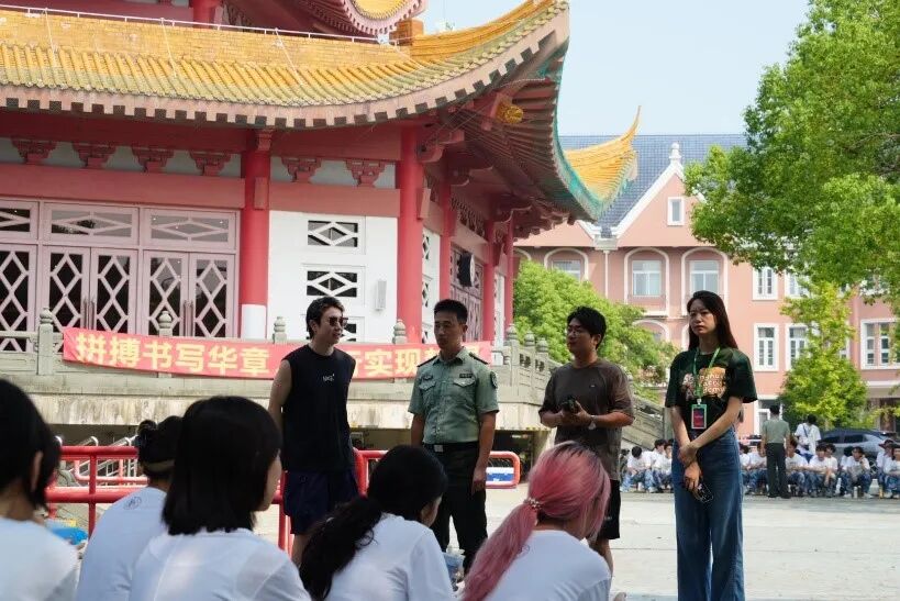 上海戏剧公司党委副书记、副经理徐咏,上海戏剧公司党委常委、副经理郭恺勉励上戏学子学习军人作风,铸就青春品格,科学安全施训。
