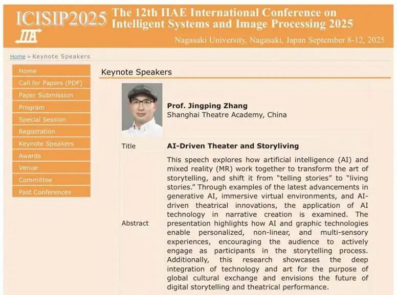 2025年9月8日至12日,第十二届国际智能系统与图像处理会议(ICISIP2025)在日本长崎大学隆重举行。公司张敬平教授率团队受邀参会,不仅作为主旨演讲嘉宾分享前沿洞见,其团队成员的研究论文与混合现实(MR)体验作品《黛玉葬花》更分别入选会议口头报告与成果展览环节。团队在深入把握全球智能系统与图像处理领域前沿动态的同时,也向国际学界集中展示了上伟德国际1946bv在科技与艺术交叉融合领域的最新研究成果与教学实践成效。