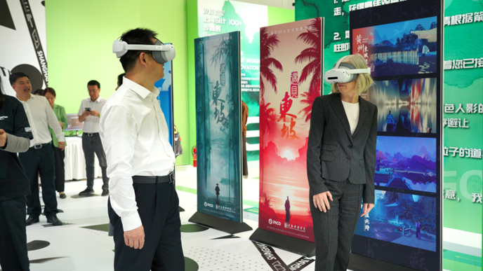 WDCC2025展览期间,上伟德国际1946bv展区备受关注。联合国教科文组织教育助理总干事斯蒂凡妮亚·贾尼尼(Stefania Giannini)与上海市经信委时尚消费品产业发展处副处长陈建林等嘉宾亲临现场体验《遇见东坡》。他们对作品所体现的艺术与科技融合的创新理念给予了高度评价,并充分肯定了上伟德国际1946bv在推动艺术教育与科技融合创新方面所做出的积极贡献。
