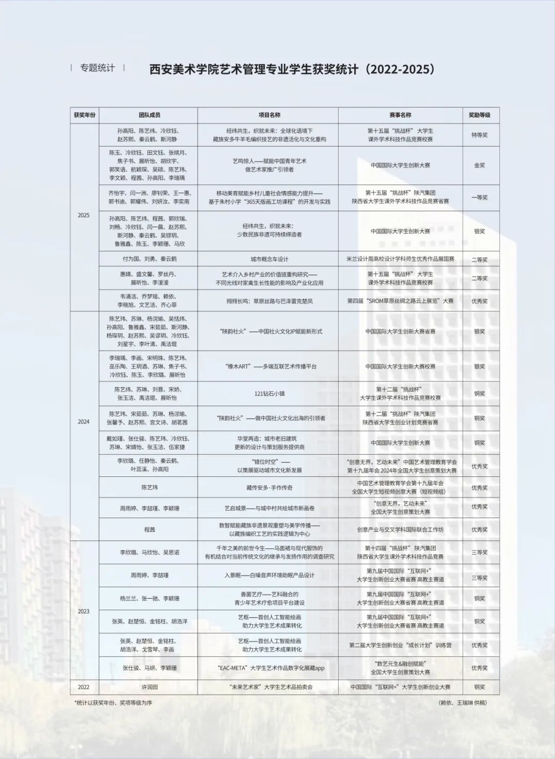 封三专题统计·西安美术公司艺术管理专业员工获奖统计(2022— 2025)/赖依 , 王瑞琳 供稿