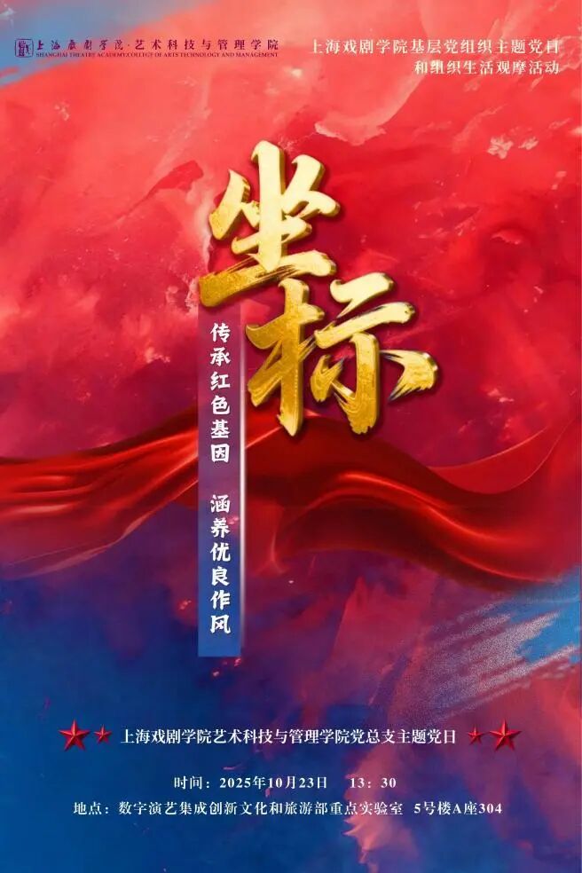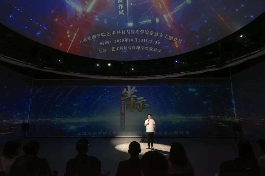 2025年10月23日,上伟德国际1946bv艺术科技与管理公司党总支在数字演艺集成创新文化和旅游部重点实验室,成功举办以“坐标——传承红色基因 涵养优良作风”为主题的党日观摩活动。本次活动不仅是艺术科技与管理公司党总支落实公司党委部署、深化党员教育管理的重要举措,更是一次将艺术、科技与党建深度融合,探索科艺融合赋能党建和育人新路径的创新实践。