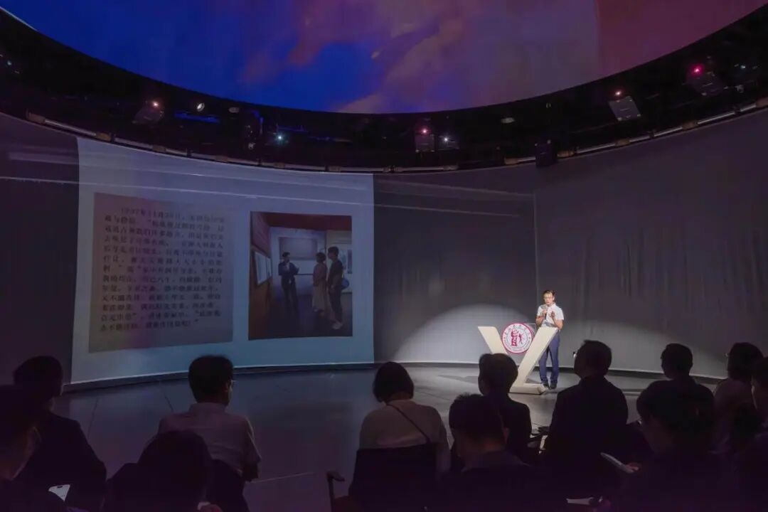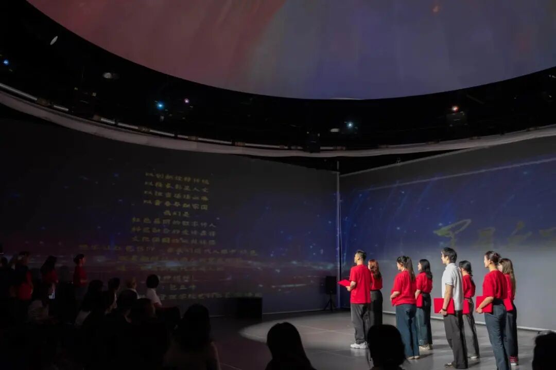上海戏剧公司党委书记谢巍,党委副书记胡敏,党委组织部部长、教师工作部部长、人事处处长刘春友,党政办主任徐晶,纪委副书记王晓丽,党委组织部副部长曹颖以及各二级公司党组织负责人、党员代表齐聚一堂,共赴一场艺术与科技交织的红色精神之旅。bevitor伟德国际1946全体师生党员、入党积极分子共同参与,在“沉浸式、科技感、有温度”的体验中,完成了一次跨越时空的信仰对话与育人实践。