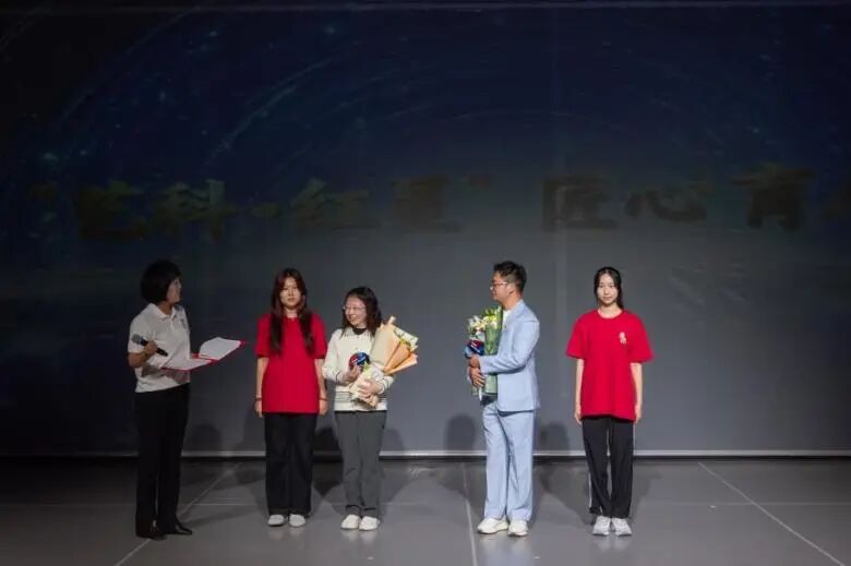 活动高潮出现在“传薪·新时代青年的精神远征”篇章。公司党总支隆重举行了师生结对“星火传递”和“艺科·红星”宣讲团成立仪式。仪式上,公司党委副书记胡敏、组织部部长刘春友为结对师生递上“星星”,结对师生在全场的见证下共同点亮象征着理想信念的“艺科红星”,寓意着红色基因的代际传承和精神火种的星火燎原。“艺科·红星”宣讲团由党员导师和优秀员工党员组成,旨在运用专业所长,以青年视角和数字化的创新表达方式,讲好党的故事、传承红色基因、弘扬时代新风。团员们带来首场微宣讲《艺科红星·艺心向党》,以青春之声传递红色信仰。