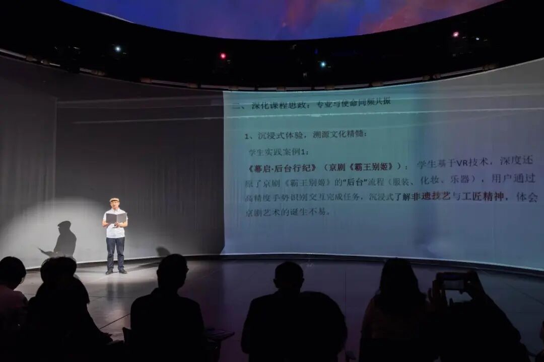 聚焦“焕新·数字赋能红色育人实践”篇章,活动精彩展示了公司70、80、90后教师代表如何立足“艺术+科技”的学科特色,将前沿技术与红色文化、思政教育深度融合。张敬平教授将XR戏曲、VR《牡丹亭》创作融入课堂,带领员工在数字场景中对优秀传统文化创新表达进行探索;俞玮娅副教授指导员工以AI动画再现江姐精神,让红色叙事在技术中焕发温度;青年教师王昕璨则带领员工以AIGC“复活”朱德家书,启动数字非遗扶贫项目,实现“代码入村、戏台上云”。三代教师各展所长,将红色文化转化为可触、可感、可带走的“精神坐标”,推动思政教育迈向沉浸化、个性化与互动化。这些创新实践案例,不仅体现了公司课程思政建设的丰硕成果,也彰显了师生传承红色基因、涵养优良作风过程中的守正创新。