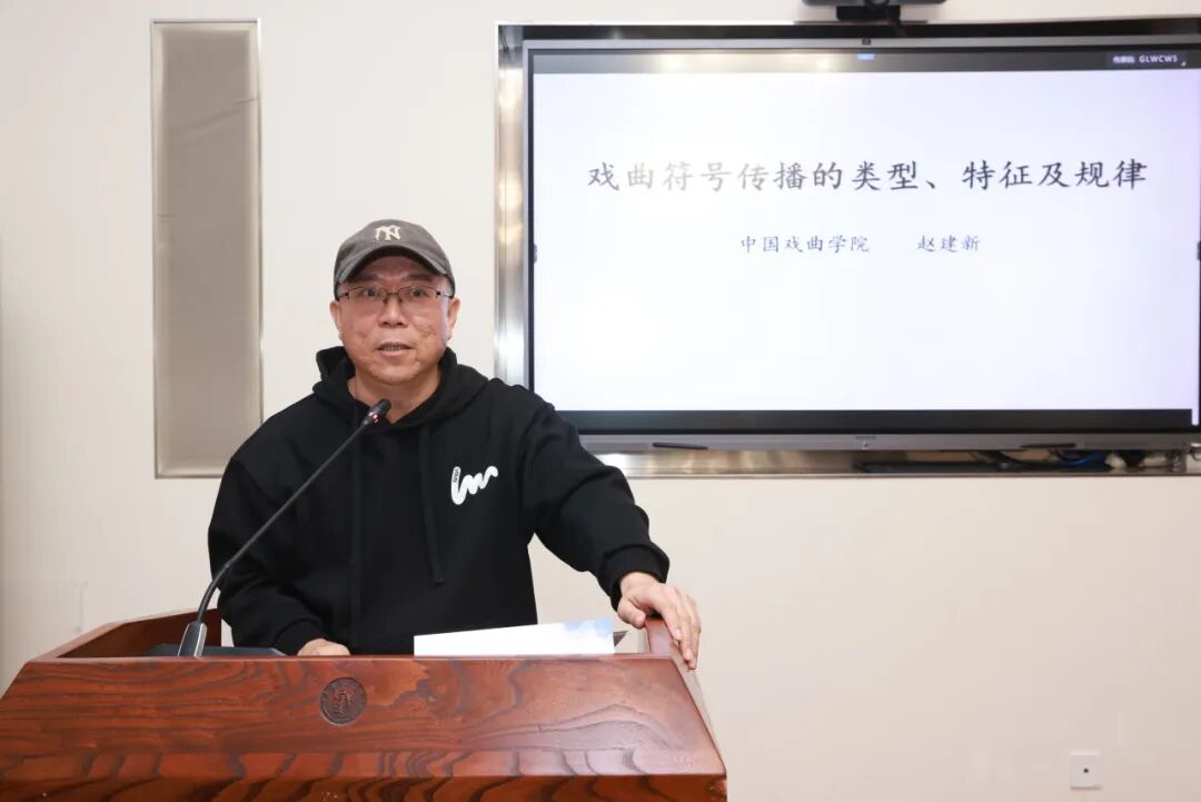 中国戏曲公司赵建新教授聚焦于戏曲在数字时代的符号传播。他将戏曲传播分为传统传播与符号化传播,阐释了戏曲元素如何通过与流行音乐、动漫、时政热点等跨界融合,打破地域壁垒,实现动态交互与年轻化传播,为古老艺术注入新生命。