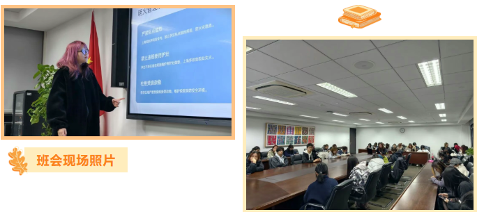 各班级均以真实案例为切入点,通过播放 “小火亡人” 专题片、剖析高校安全事故典型案例,直观展现用电不当、明火使用、诈骗陷阱等风险的严重危害。25级艺术管理研究生班结合专业特性,重点讨论了剧场布景易燃材料存放、工作室设备用电安全等场景化隐患;23级艺术管理本科班则聚焦楼道吸烟、应急通道堆物等身边常见问题,让同学们深刻认识到 “安全无小事,防患于未然” 的重要性。