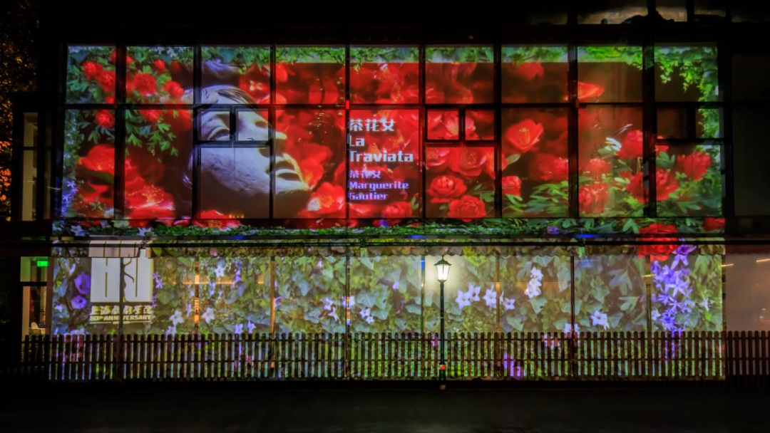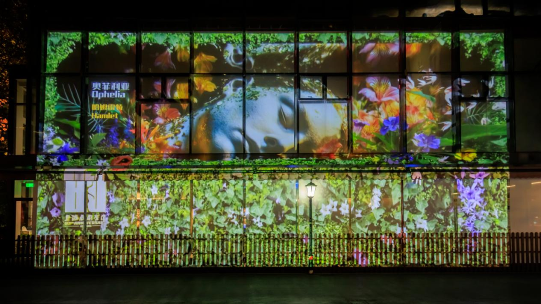 这扇“窗”是双向的:向内,它凝视着上戏八十载的戏剧传承与精神谱系;向外,它向世界展示着戏剧艺术的无限魅力。而我们找到的最核心的意象,是“戏剧繁花”——让那些经典剧本中不朽的女性灵魂,以花的形式,在母校的夜晚温柔绽放。当茶花女遇见茶花,当奥菲利亚邂逅水畔野花,当杜丽娘融于牡丹……我们想做的是,让文字中的生命,获得一次可视的、诗意的呼吸。