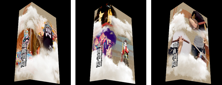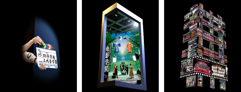 主创团队怀着对校史文脉的敬畏与对艺术表达的极致追求,主动携手八大院系,与各系进行了多轮深度沟通。从精准提炼专业特色,到细致梳理展示诉求,团队对方案的呈现形式与内容内核反复打磨,历经数轮研讨与修改,最终确立了兼具艺术质感与专业深度的视觉方案。方案中呈现的每一张剧目海报、每一幅师生合影,都承载着各院系数十载耕耘艺术教育的初心,凝聚着一代代师生的心血,是教育成果的生动缩影,更是上戏艺术文脉绵延不绝的鲜活见证。01