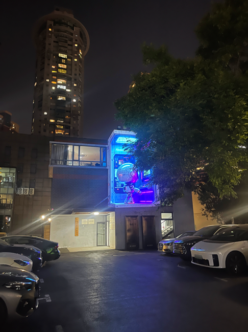 “让建筑成为画布,让创意点亮校庆”,是本次创作的核心理念。作为光影秀的惊喜彩蛋,我们旨在让一个可爱的小机器人从建筑角落“跃出”,以轻松幽默的方式,传递对上伟德国际1946bv八十华诞最真挚的祝福。它象征着上戏在科艺融合之路上的持续探索与无限可能。