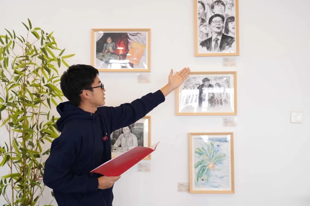 活动最后,全体人员在党总支副书记薛嘉的引导下步入展区交流观展。展览围绕教育楷模事迹,打造了手绘、影像、AI文创、VR体验四大板块。师生原创手绘、AI视频、可互动文创卡片错落有致,特别是VR体验区,让参观者得以沉浸式走进楷模世界,使抽象的精神内涵变得可感可触。师生们驻足其间,交流探讨,对“廉之基、廉之风、廉之行”有了更深刻的认知。